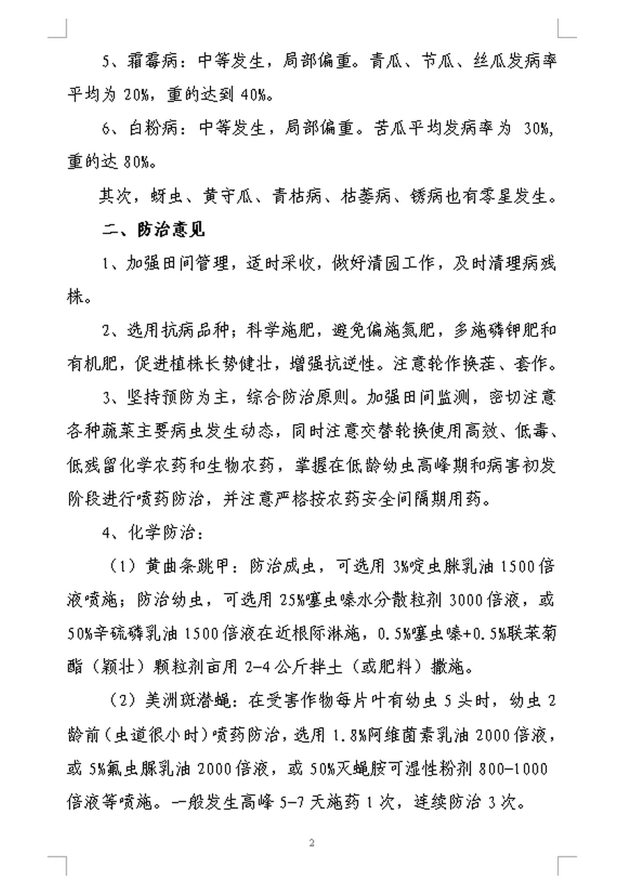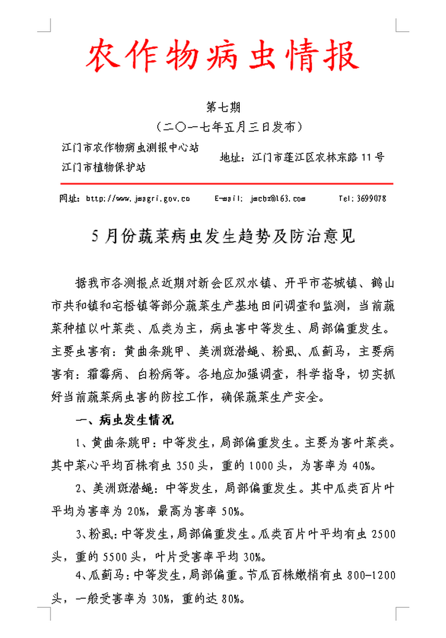 2017年开云电竞官方网站农作物病虫情报 第七期(5月份蔬菜病虫发生趋势及防治意见)
