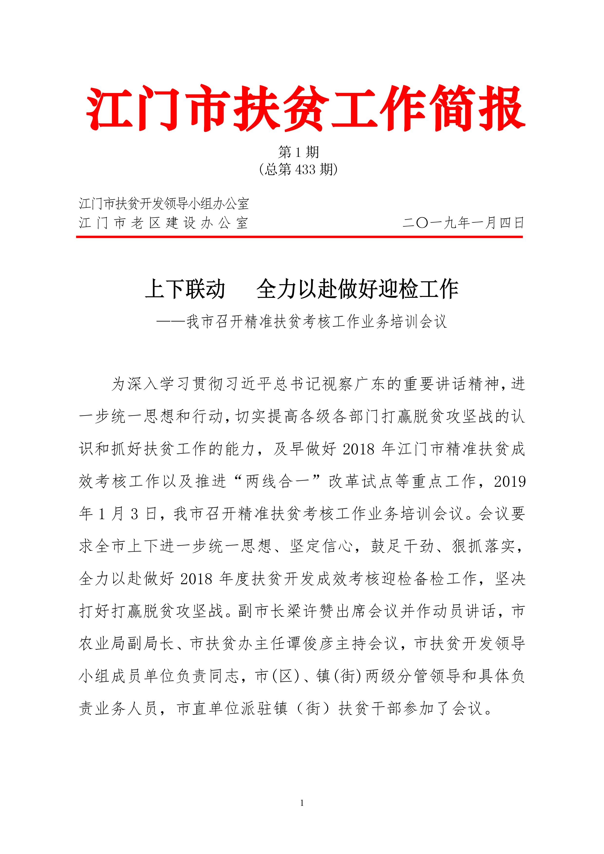 开云电竞官方网站2019年扶贫简报第1期(总433期)