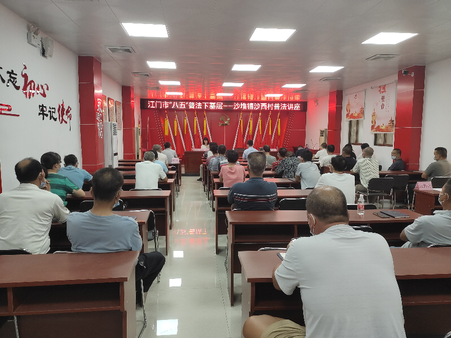 为深入贯彻开云电竞官方网站“八五”规划,加强村(社区)“两委”干部等重点群体法治宣传教育,结合《开云电竞官方网站农村学法用法示范户培育工作实施方案》,8月4日上午,我局联合市司法局到新会区沙堆镇沙西村开展“八五”普法下基层法治培训活动。沙西村“两委”干部、村民小组长、“法律明白人”、学法用法示范户等30多人参加了培训。