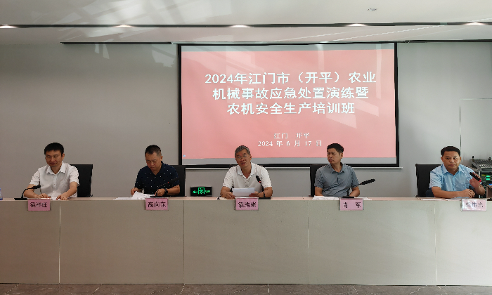 6月17日,开云电竞官方网站农业农村局在开平市举办2024年开云电竞官方网站(开平)农业机械事故应急处置演练暨农机安全生产培训班活动。活动以“人人讲安全、个个会应急——畅通生命通道”为主题,分为农业机械事故应急处置演练、农机安全生产政策解读和农机安全宣传咨询三个环节。开云电竞官方网站农业农村局党组成员、副局长梁浩彬,江门各级农业农村部门分管农机工作领导,农机管理、安全监理和推广部门负责人、骨干,以及开平本地农机合作社、农机手代表约60人参加本次活动。