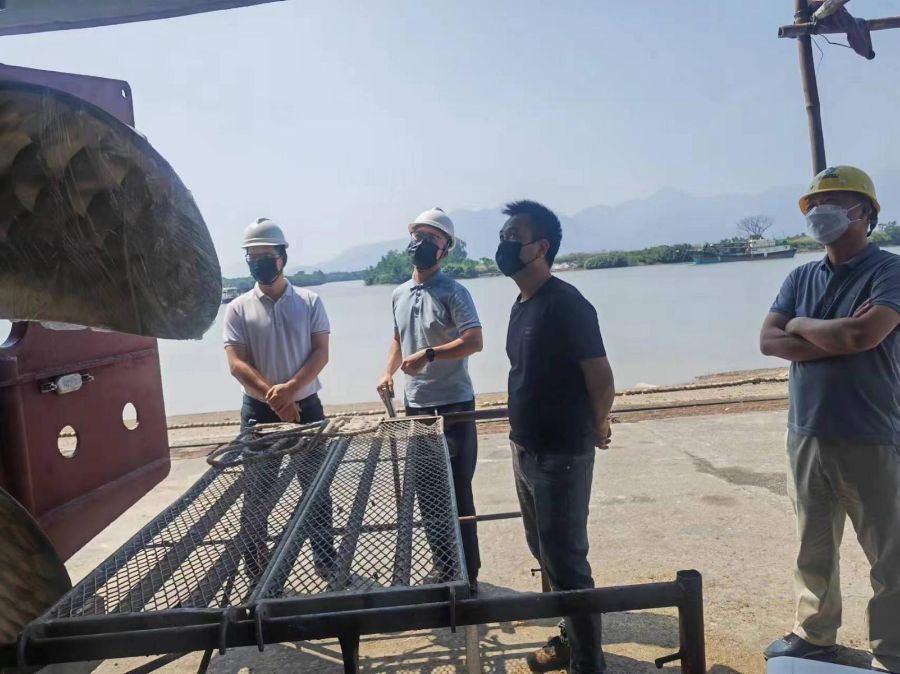 10月9日,市海洋综合执法支队副支队长钟树年到台山市汶村镇渔船建造企业开展渔船检验工作。