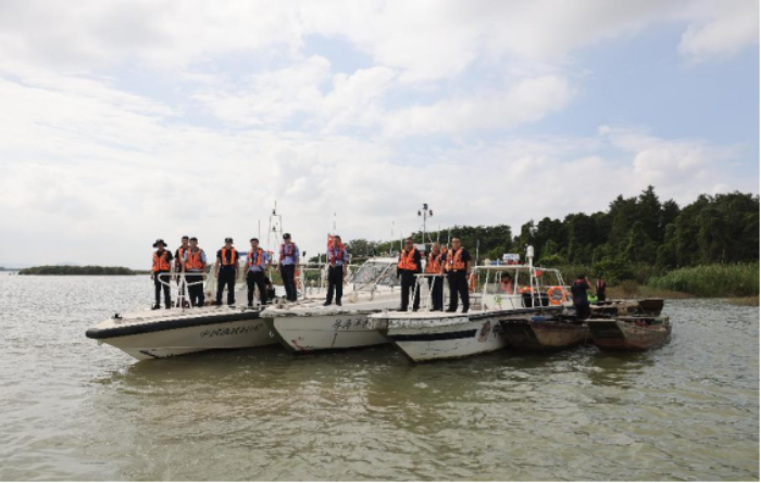 10月17日,市海洋综合执法支队联合中山支队、中山市打私部门开展打击电鱼暨涉渔“三无”船舶“2024百日攻坚”专项执法行动,捣毁电鱼船停泊窝点1个,依法查扣涉渔“三无”船舶5艘。