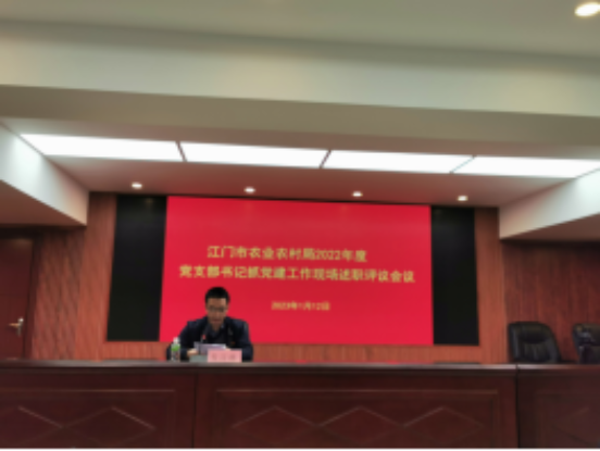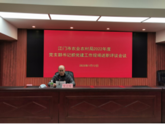 1月12日,市农业农村局开展2022年度党支部书记现场述职评议工作,听取支部书记述职汇报,全面“体检”直属党支部履行抓党建责任成效,交流探讨党建工作经验,查找梳理党建问题短板,并现场进行评议打分,推动机关党建工作高质量发展。局领导班子成员,各党支部书记、副书记,局机关各科室负责人、局属各事业单位负责人近50人参加了评议会,局党组书记、局长、机关党委书记郑少强作了讲话。会议由局党组成员、副局长、机关党委副书记潘志坚主持。
