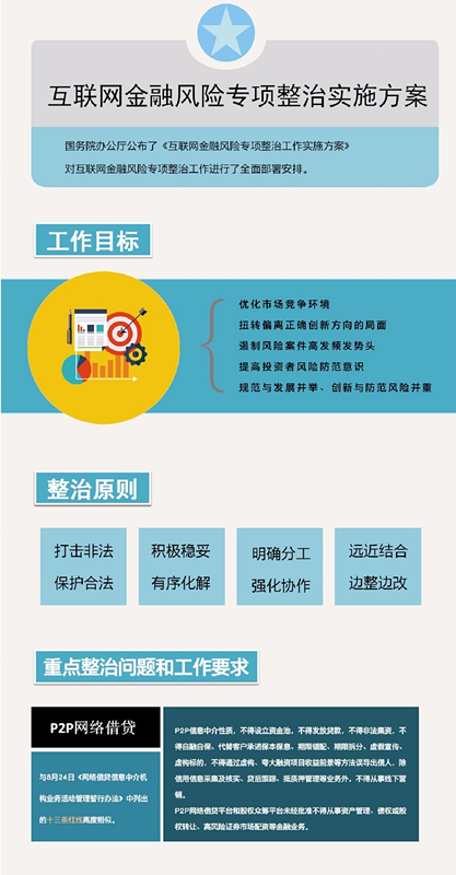 P2P网络借贷领域的整治重点是落实网络借贷机构信息中介定位,禁止网络借贷机构突破信息中介职能定位开展设立资金池、自融自保、发放贷款等违法违规活动。