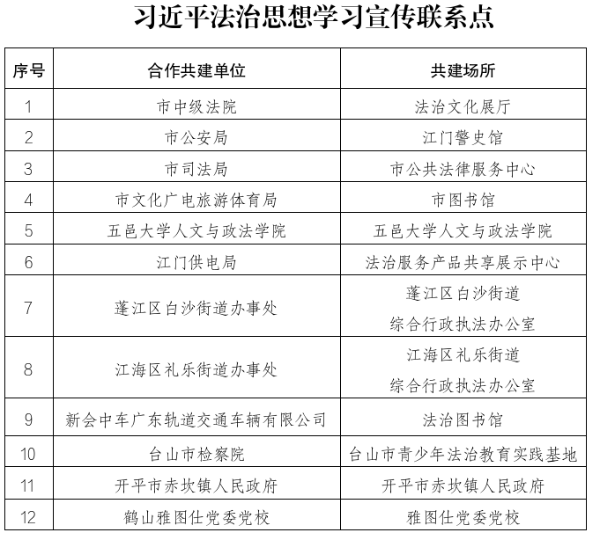 12个学习宣传联系点串联起市县镇三级,涵盖高校法学教育、法治廉政教育、行业依法治理、企业法治建设和合规管理、社会治理、未成年法治教育、公共法律服务等不同领域。各联系点每年开展形式多样的习近平法治思想学习宣传活动,同时发挥前沿哨点作用,及时收集企业和群众反映强烈的法治问题,为法治调查研究和统筹规划提供支持。《民主与法制》周刊2025年第04期刊载文章《学思践悟习近平法治思想,打造学习宣传教育“广东样板”》中肯定了我市的相关做法。