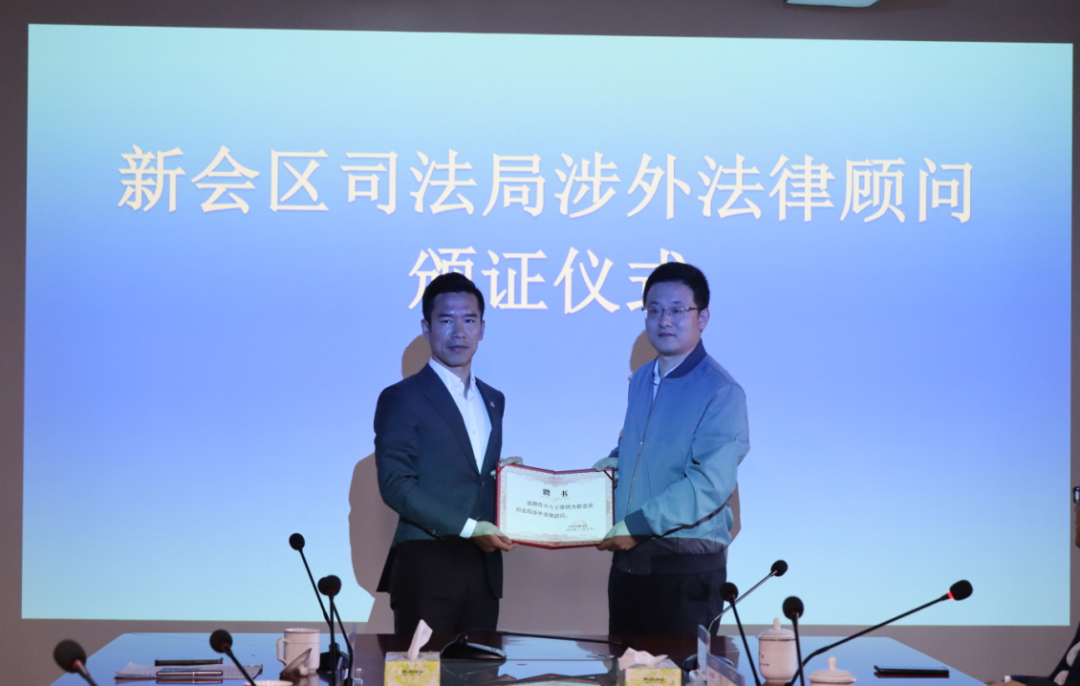 为进一步充实新会区涉外法律人才队伍,提升涉外法律服务水平,新会区司法局聘请广东广信君达律师事务所合伙人、“广东省涉外律师领军人才”杨超男律师担任区司法局涉外法律顾问,为全区提供涉外法律事务咨询意见,开展涉外法律讲座等专项服务。