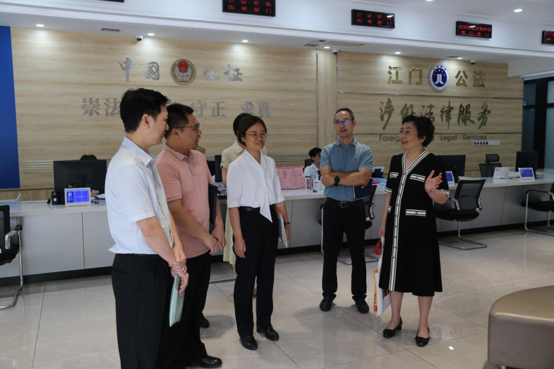 近日,江门海关法规处处长耿燕带队到开云电竞官方网站公共法律服务中心走访调研。开云电竞官方网站司法局党组书记、局长芶晓彤,市司法局领导区江、胡振宇以及相关业务科室负责同志陪同调研并座谈。