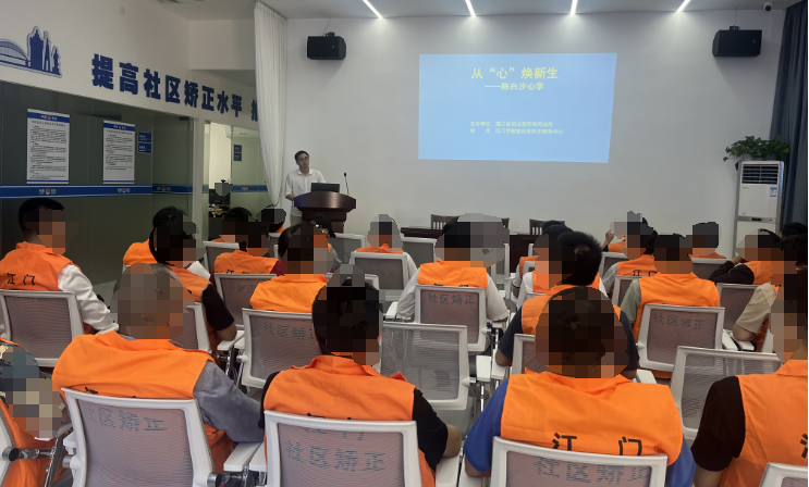 蓬江区司法局组织社区矫正对象开展沉浸式心学课堂。