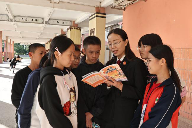 开展法院开放日、检察开放日,累计吸引师生1万人次走进法院、检察院,感受法律威严与公正。蓬江区检察院举办“法治进校园”活动暨蓬江区校园法治教育情景剧展演。多部门联合开展“城乡手拉手,助力百千万”红领巾特色章争创,吸引超2.5万名少先队员参与。开展“绿美蓬江红领巾在行动”争章活动,1万余名少先队员争当“小小法治讲解员”。