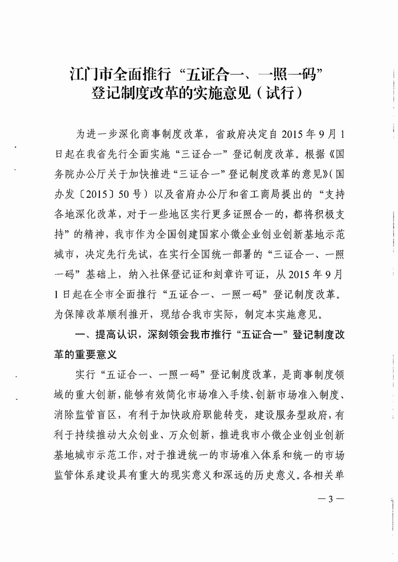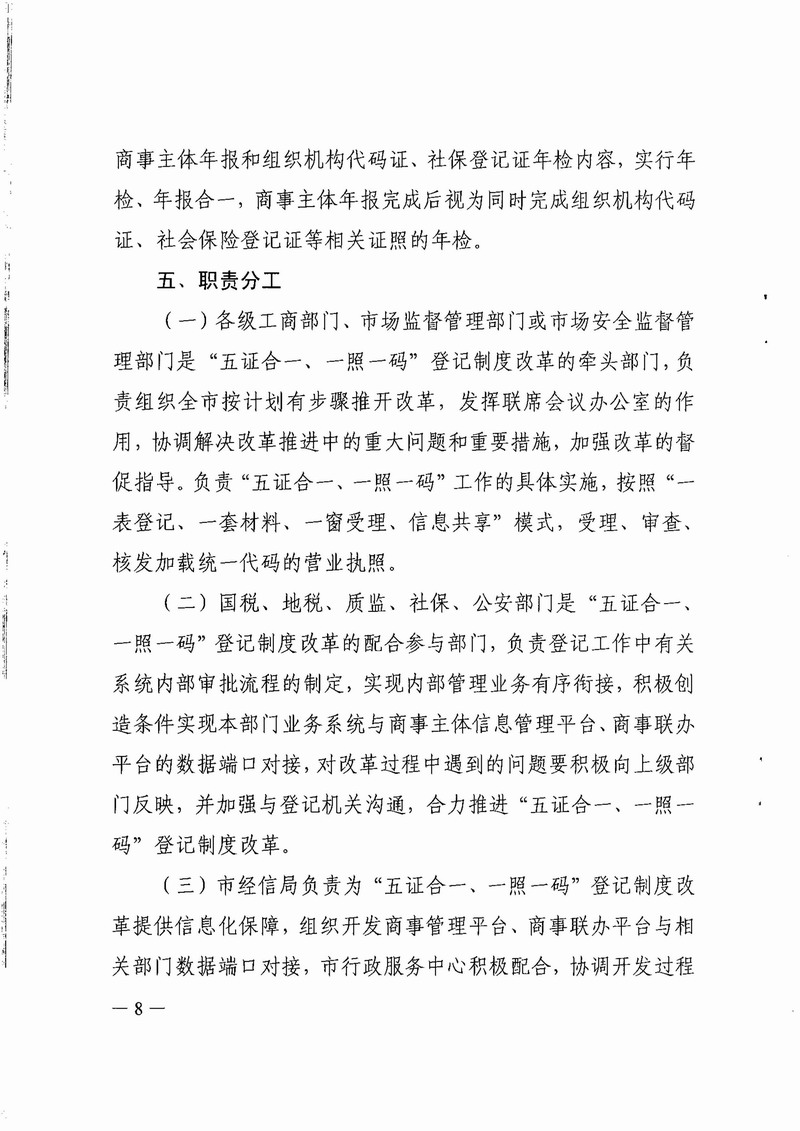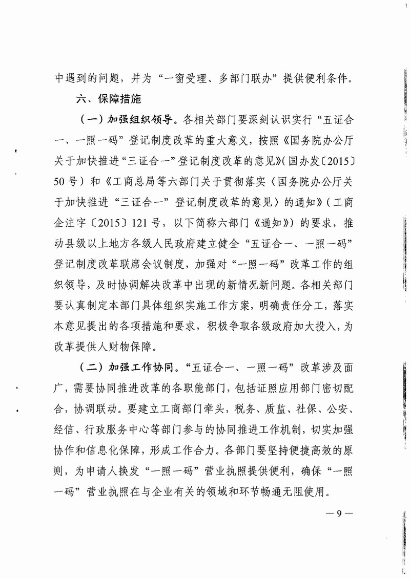 开云电竞官方网站工商局等八部门关于印发开云电竞官方网站全面推行“五证合一、一照一码”