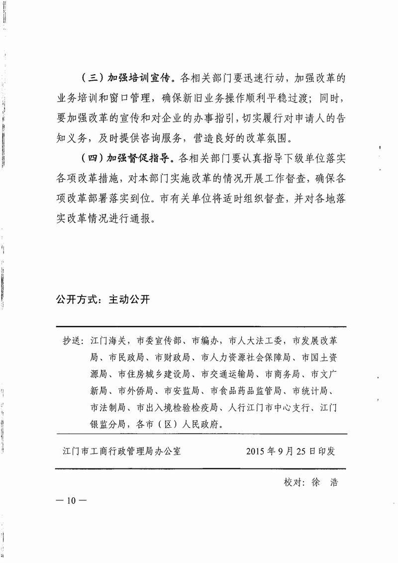 登记制度改革的实施意见(试行)的通知