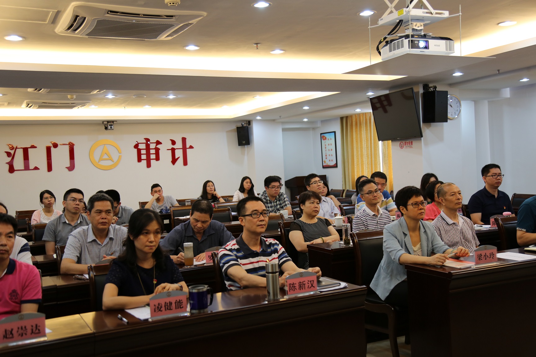 陈新汉同志号召全体干部职工要以教育学习为契机,磨练过硬素质,锤炼过硬作风,履职尽责,扎实工作,认真完成今年审计4项重点工作:一是按时完成审计任务,尤其要抓好政策跟踪审计、重大基础设施审计调查、鹤山市财政决算审计、7个镇(街)经济责任审计等重点工作,确保审计进度和审计质量。二是继续推进审计改革,结合江门实际,尽快出台相关配套制度文件,抓紧机构设置、人员配备等工作。三是持续开展制度建设,不断健全完善各项制度。四是把握工作的主动权,及早谋划好明年的审计工作。