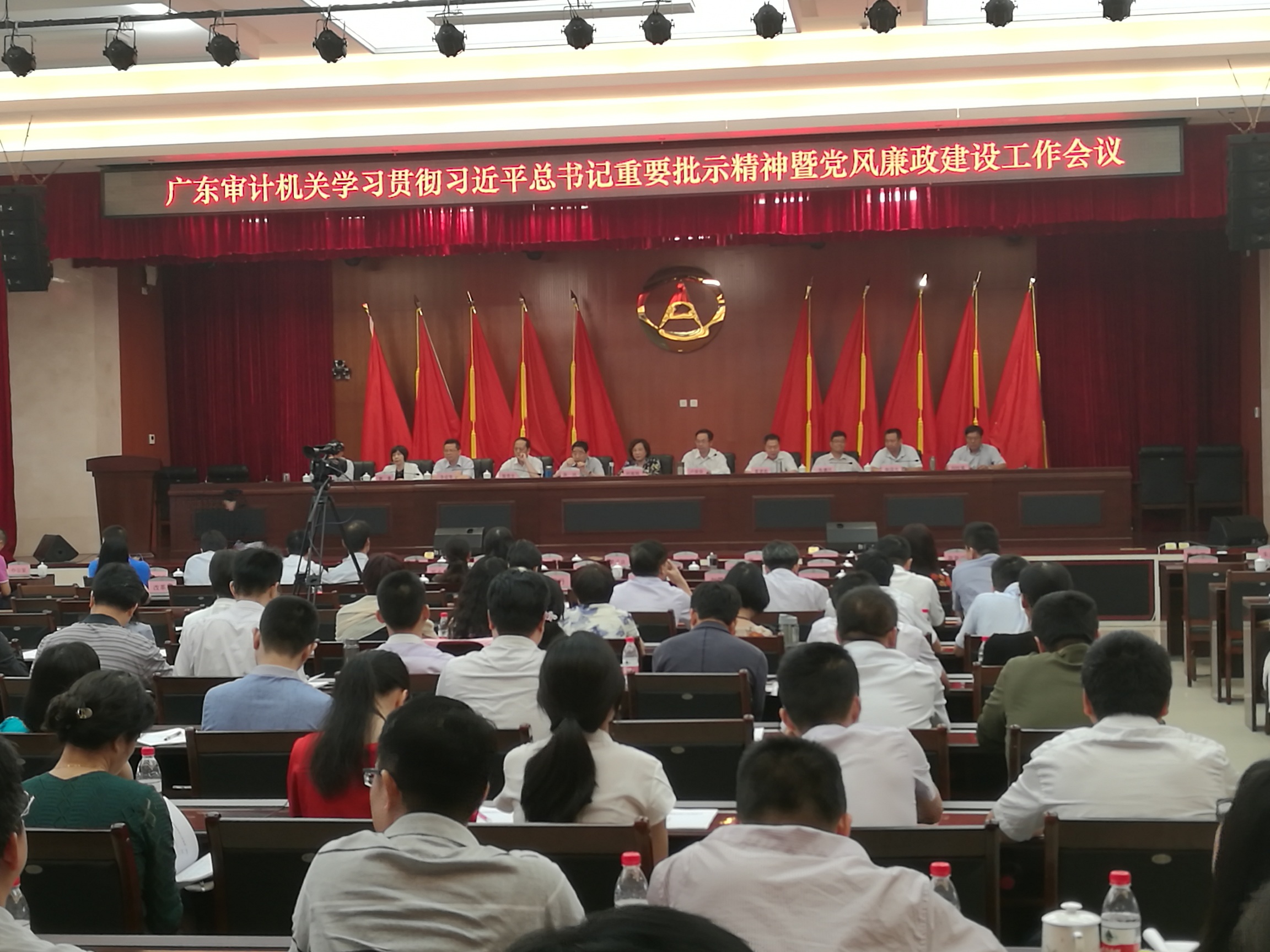 5月10日,省审计厅举办广东省审计机关学习贯彻习近平总书记重要批示精神暨党风廉政建设工作会议。开云电竞官方网站审计局党组书记、局长陈新汉,纪检组长林伟雄同志在省厅主会场出席会议,我市全体审计干部职工在分会场通过收看视频的方式参加会议。