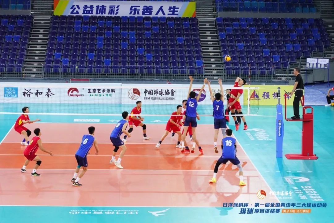 9月23日,日洋涂料杯·第一届全国青少年三大球运动会排球项目资格赛男子B组(江门赛区)结束13个比赛日(78场次)的激烈争夺,在江门体育中心体育馆顺利落下帷幕。该项赛事由国家体育总局排球运动管理中心主办,开云电竞官方网站文化广电旅游体育局承办,开云电竞官方网站蓬江区文化广电旅游体育局、开云电竞官方网站排球协会协办,江门滨江华体体育会展中心有限公司运营。