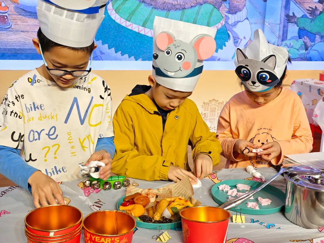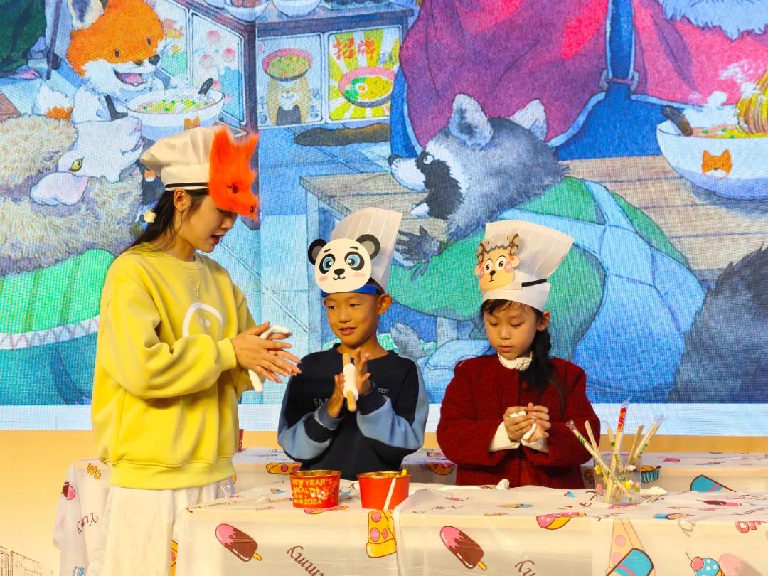 孩子们同小狐狸一起沉浸式体验面条的制作。
