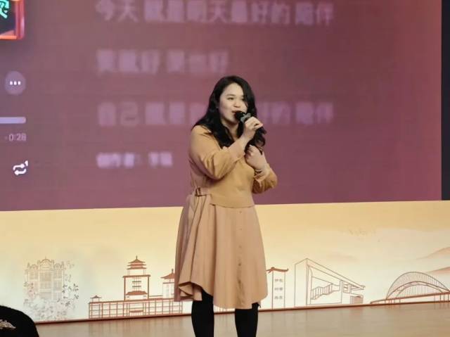一首激昂的男声合唱《红日》拉开了职工联欢会的序幕,图书馆的帅哥男团歌声嘹亮,热情奔放,台下观众欢声笑语,拍手叫好,并跟着动感的音律一同唱起来,歌声此起彼伏,把迎接新年的欢乐氛围感拉满。独唱节目《祝福》与《小美满》,美女馆员们以深情而美妙的嗓音,为新的一年送上了最真挚的祝愿,让在场的每一个人都感受到了温馨与希望。女声合唱《I wish you love》与《甜蜜蜜》,那熟悉而又温馨的旋律,如同一股甜蜜的清流,缓缓流淌在每个人的心间,唤醒了大家心中最柔软的部分。而独唱《风含情水含笑》更是以其细腻的情感表达,将观众带入了一个充满浪漫与回忆的美好世界,让人沉醉不已。高潮迭起之时,《爱情陷阱+卡拉永远ok》和《超人主题曲》以其激情四谢的演绎,再次将现场气氛推向了顶点,还有可爱的小歌手倾情演唱,为舞台再添一抹色彩。