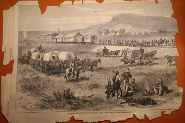 1875年美国报纸刊登的修筑铁路工地的漫画中出现印第安人形象