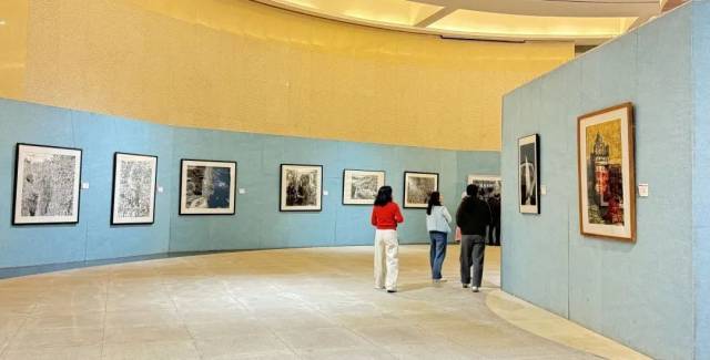 本次展览共展出江门、阳江、深圳三地版画艺术家精心创作的版画作品80余幅,在刻刀与墨韵间展开跨越地域的文化对话——江门地区的《侨魂・碉楼》《筑梦侨乡》《邑土·游龙》等作品,巧妙地将侨乡建筑与岭南文化符号相融合,生动还原了江门侨乡的历史变迁与文化传承,体现了对地域文化根脉的深度挖掘与坚守。阳江展区的《老乡的礼物》《家里的小狸奴》《摘沙姜话家常》等作品,以现实主义创作风格描绘出阳江质朴的风土人情,充满了浓郁的生活烟火气。深圳展区的《工地日记》《深圳北站》《新校园建设》等作品,大胆创新构图与色彩搭配,紧扣城市发展脉络,展现出深圳作为“创新之都”的时代风貌与先锋精神,是城市文化与时代精神的完美结合。