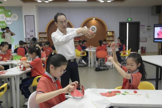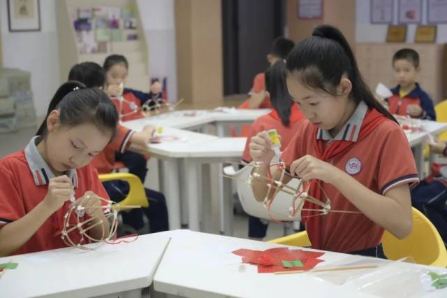 非遗体验课和文化课程教学一样,都是从知其名到懂其用再到解其理。新会鱼灯代表性传承人李健华老师首先用视频形式开篇,加深同学们的视觉记忆,从节日场景切入,在分享了鱼灯与自己的成长故事后,一步一步进行示范,手把手指导同学们制作的技巧,很快一条条栩栩如生的“小鲤鱼”便完成了,在半空中成群结队地游动起来,师生们收获满满。