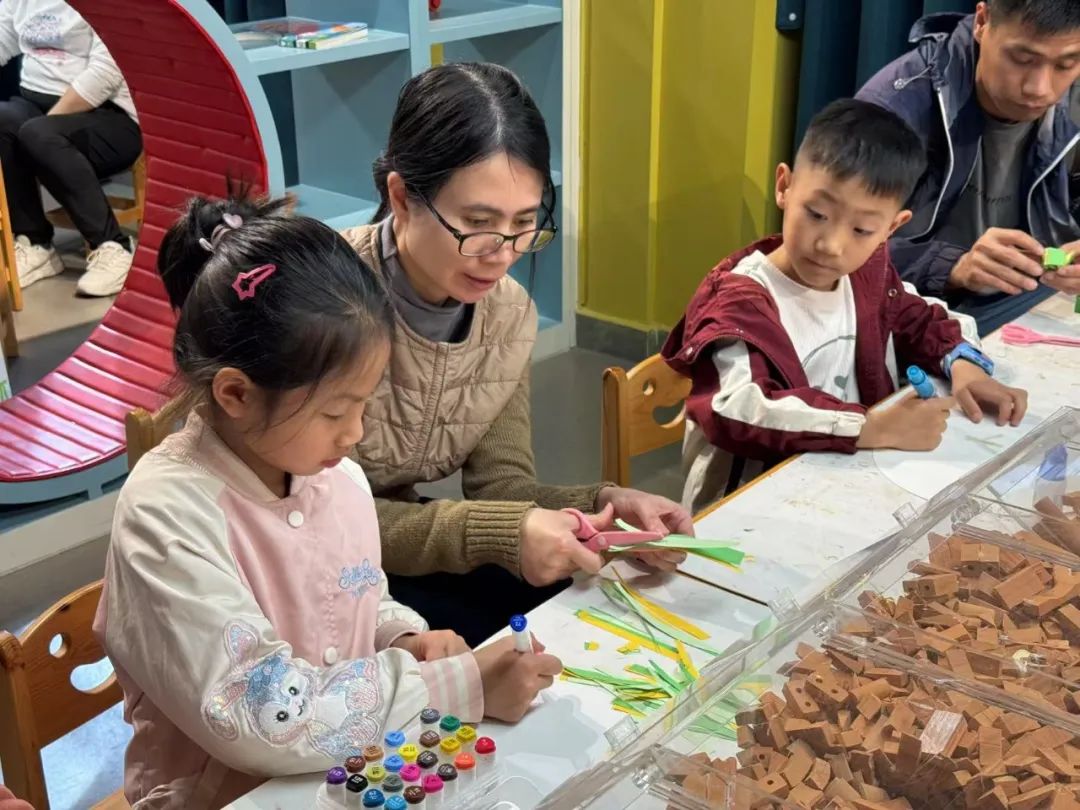 故事结束后,一场充满创意的动手制作活动“种子生长观察窗”开启。文化志愿者老师为小朋友们分发了材料,制作过程中,小朋友们的眼神中满是专注与期待,家长们在一旁协助孩子,同时也与他们交流着对种子生长的期待和想象,有的家长耐心地给孩子讲解如何制作种子生长观察窗。现场一片热闹温馨,大家沉浸在亲手创造的乐趣中。