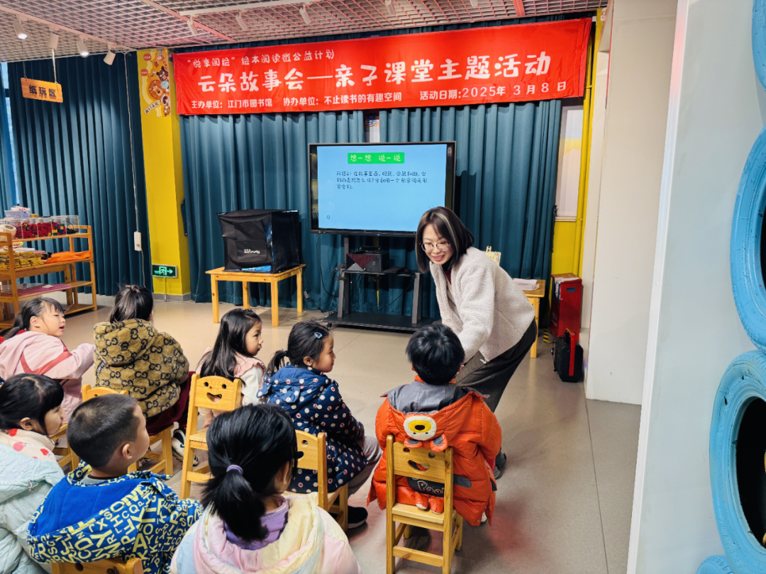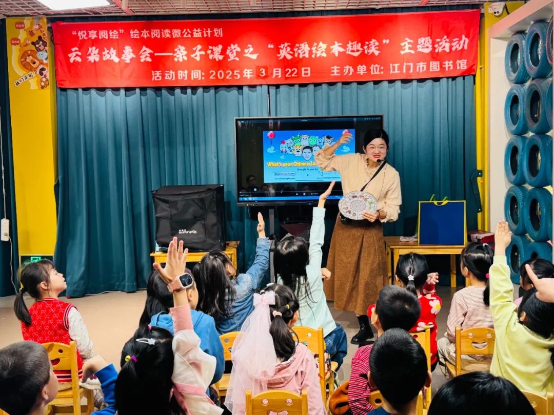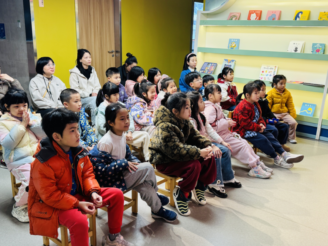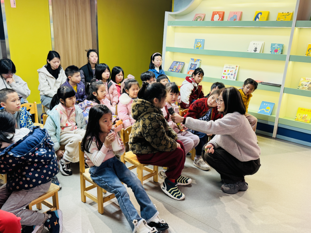 在讲解过程中,文化志愿者老师巧妙地设置了许多互动环节,邀请孩子们举手发言,猜测下一个情节会对应哪种气象。孩子们纷纷积极响应,小手如林般举起,稚嫩的声音充满自信地表达着自己的想法。有的孩子凭借敏锐的观察力,精准地说出答案,赢得了全场的掌声;有的孩子则给出充满创意的回答,虽然与答案稍有偏差,却也展现出了天马行空的想象力,让大家忍俊不禁。家长们也全身心投入其中,他们微笑着鼓励孩子勇敢表达,与孩子们一同沉浸在绘本营造的欢乐氛围里,亲子之间的情感在互动中悄然升温。