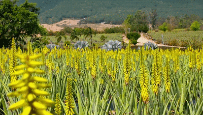 在台山市四九镇东冠村的瑷露德玛芦荟庄园,上千亩芦荟迎来了一年一度的花期。百万朵芦荟花穗如倒挂的琉璃风铃,在美式木屋与荷兰风车间摇曳生姿。游客们手提花篮穿梭花径,刚拍完“ins风”(年轻风格)大片,又被芦荟宴的清新俘获——冰镇芦荟冻沁人心脾,芦荟面膜体验区飘来天然草本香。“赏花+美食+美肤”的全感官体验,让这座庄园热闹非凡。清明小长假,在芦荟庄园入口处的停车场,停满了广州、深圳、湛江、佛山、茂名、江门等地车牌的小轿车,游客们迫不及待地走进芦荟田里赏花、拍照。