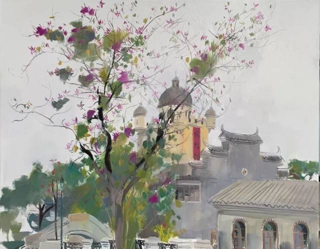 《侨乡赤坎紫荆花开》 陈世宁 80cm×100cm 油画 2024年
