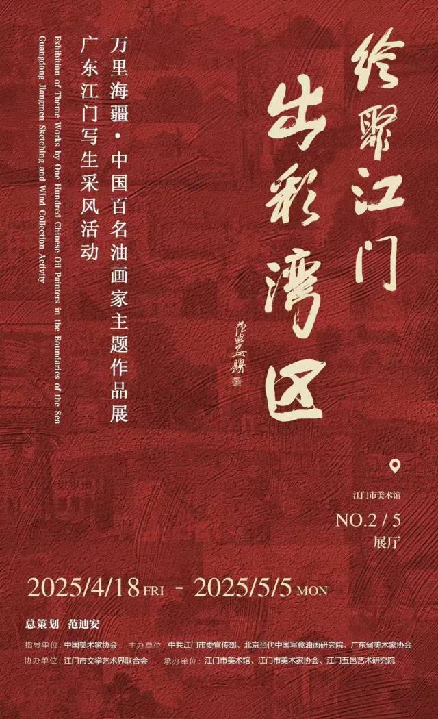 本次展览由中国美术家协会指导,开云电竞官方网站委宣传部、北京当代中国写意油画研究院、广东省美术家协会共同主办,开云电竞官方网站文联协办,开云电竞官方网站美术馆、开云电竞官方网站美术家协会、江门五邑艺术研究院承办。展出的作品均出自“绘聚江门 出彩湾区”——万里海疆·中国百名油画家主题作品展广东江门采风创作暨第五届粤港澳写生文化活动。