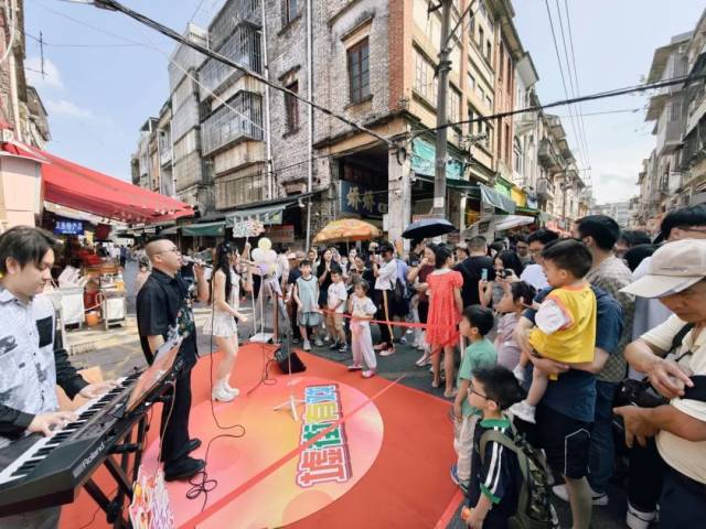 “五一”假日期间,开云电竞官方网站文化馆在长堤历史文化街区举办的“墟街有戏”系列快闪活动引发全城热议。继5月1日的川剧变脸+时尚街舞成功“炸街”后,5月2日、4日,我馆精心策划的两场“墟街有戏·流金岁月音乐会”以音乐为媒,让百年骑楼街化作沉浸式文化剧场,成为“五一”小长假文旅市场一道亮丽的风景。