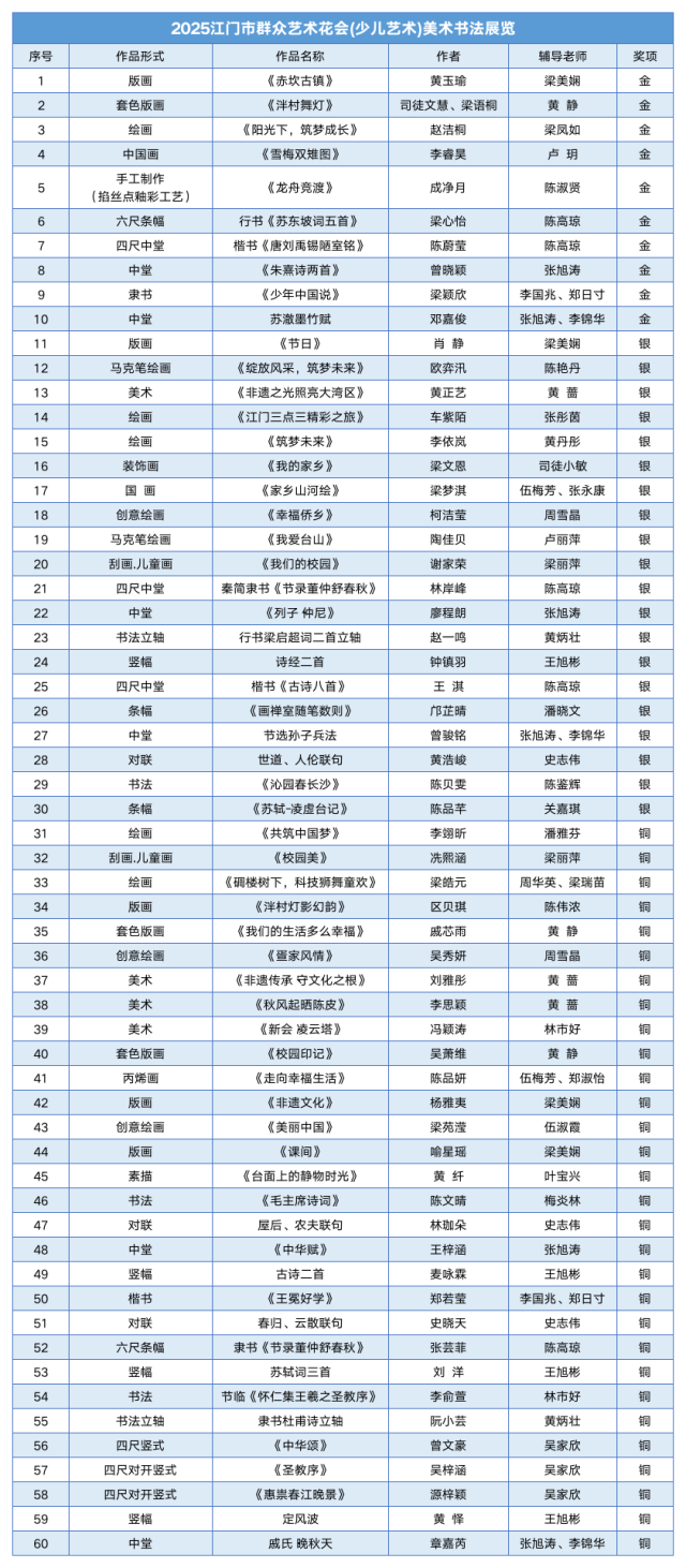 2025开云电竞官方网站群众艺术花会(少儿艺术)美术书法展览获奖名单