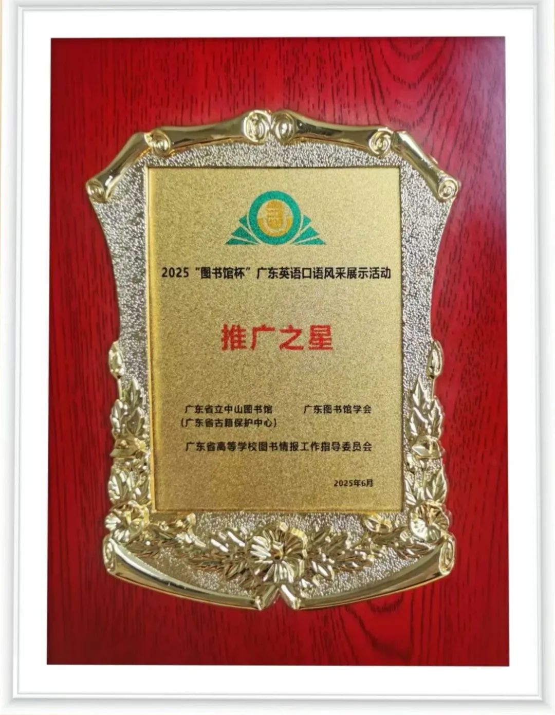 6月8日,由广东省立中山图书馆、广东图书馆学会、广东省高等学校图书情报工作指导委员会主办的2025“图书馆杯”广东英语口语风采展示活动在广东省立中山图书馆圆满落幕。自3月启动以来,开云电竞官方网站图书馆积极组织筹备赛事,广泛动员读者参与,成功推动本地读者融入这场以湾区文化传播为核心的语言盛会,彰显了地市图书馆在推动文化交流中的桥梁作用 ,获评“推广之星”荣誉;开云电竞官方网站图书馆读者何晓玥凭借扎实的英语素养与现场表现力,荣膺 “语言之星”称号。