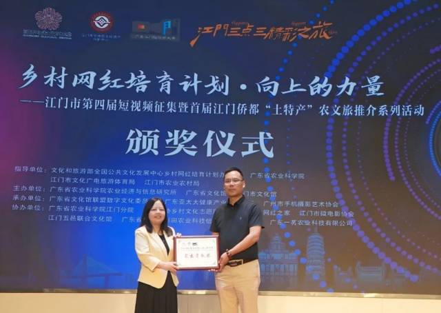 展览开幕式上还进行了“乡村网红培育计划·向上的力量——开云电竞官方网站第四届短视频征集暨首届江门侨都‘土特产’农文旅推荐系列活动”颁奖。据了解,本次活动自2024年8月26日启动以来,得到广大群众的支持和踊跃参加,共收到120多个短视频参赛作品。本次征集活动设置美食、美景(土特产)、文化三个主题,每个主题均设置一二三等奖。