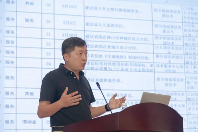 下午的培训环节由广东图书馆学会副秘书长陈杰主持。彭杰以“公共图书馆舆情管理与处理——从读者投诉到网络舆情的应对”为主题,通过分析舆情类型,制定新媒体时代舆情应对策略和设定公共图书馆舆情处置流程。培训现场学员开展了深入的交流和分享。