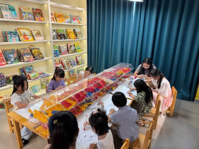 最受期待的当属手工制作环节——“我的小宇宙”。志愿者老师提前为大家准备好卡纸、半圆泡沫球等材料。在她们的耐心指导下,亲子们齐心协力开始制作。家长们帮助孩子将半圆泡沫球在卡纸上摆好位置,孩子们则小心翼翼地用胶水将其固定。随后,孩子们拿起画笔,充分发挥想象力,为“星球”涂上五彩斑斓的颜色。有的孩子把星球涂成梦幻的紫色,有的则选择充满活力的橙色,还有的用多种颜色搭配,创造出独一无二的“小宇宙”。