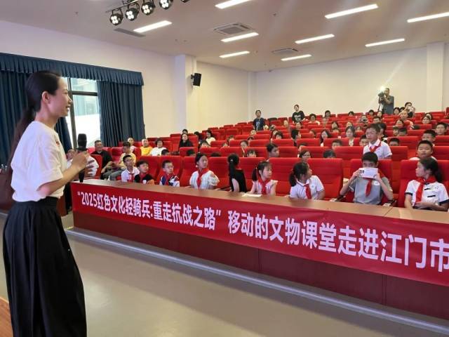 孩子们在两位老师的深情讲解下,深入探寻文物背后华侨先辈的抗战足迹,让尘封的文物鲜活呈现:从侨乡印记的开平碉楼,到侨批(银信)等文物所承载的家国情怀,再到五邑侨胞以航空救国、文艺救国、鼎力捐赠等方式支援祖国的史实,无不生动诠释着海外华侨“虽身处异乡,却心系故土”的赤诚。