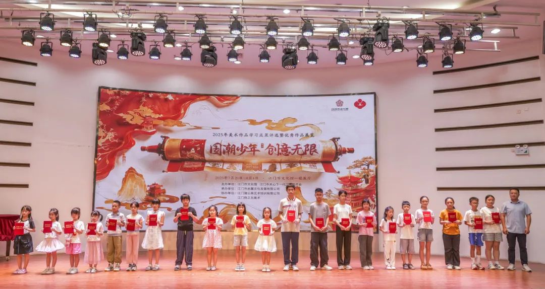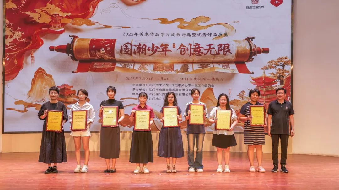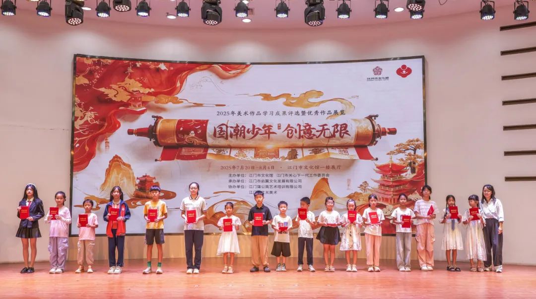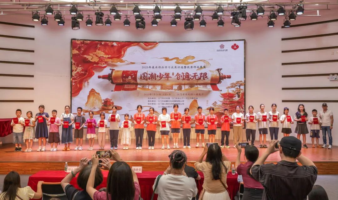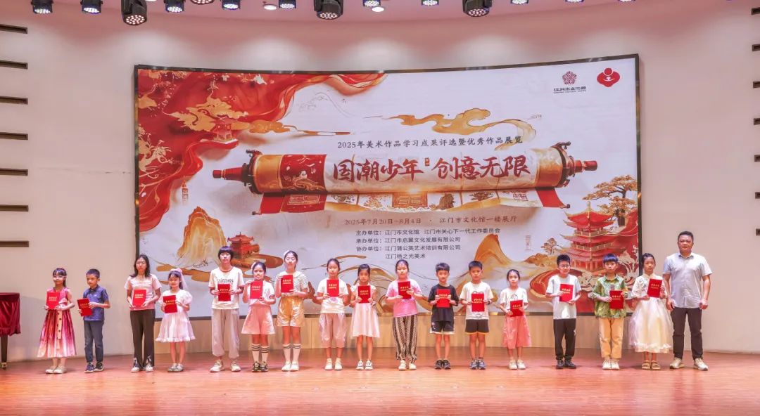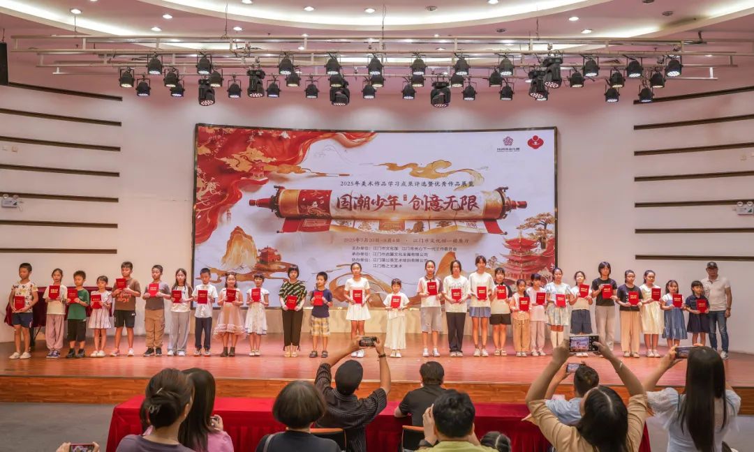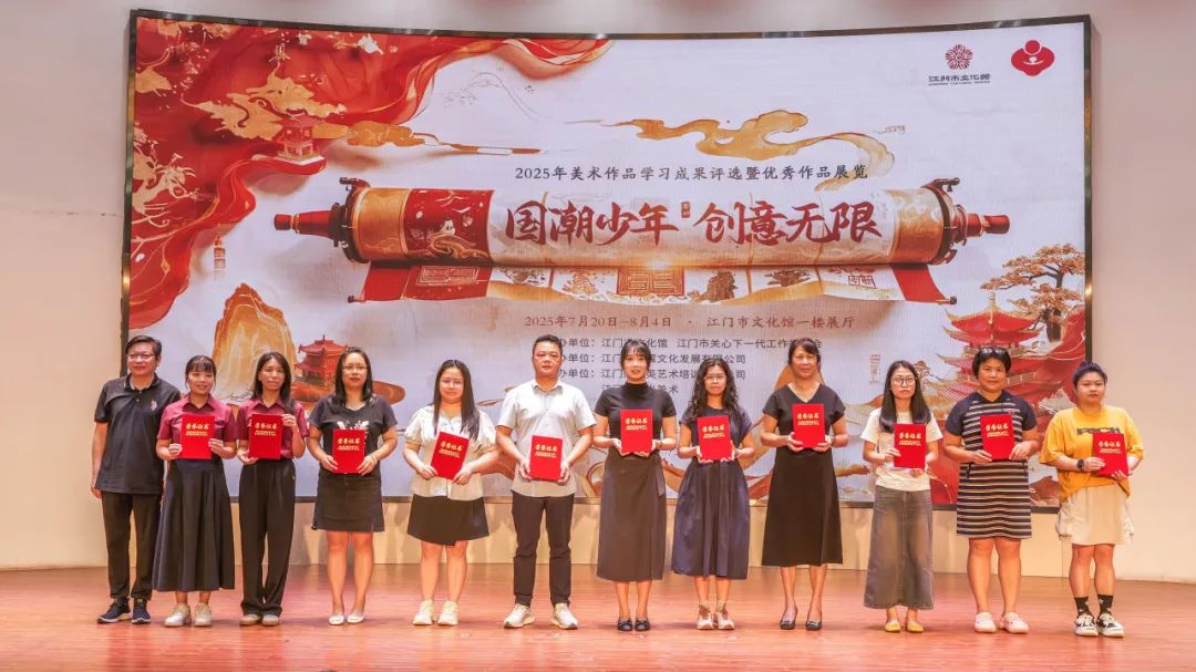 五千年文脉跃然纸上,新时代少年执笔生辉。7月22日,由开云电竞官方网站文化馆、开云电竞官方网站关心下一代工作委员会主办,开云电竞官方网站启翼文化发展有限公司承办,江门蒲公英艺术培训有限公司、江门杨之光美术协办的2025《国潮少年 创意无限》美术作品学习成果评选颁奖暨优秀作品展览开幕仪式在开云电竞官方网站文化馆举行。开云电竞官方网站文化馆副馆长张思斌、广东省美术家协会会员汤洪贵、开云电竞官方网站民间文艺家副主席陈白山等领导嘉宾以及参与此次活动的师生代表们齐聚一堂、共襄盛举。