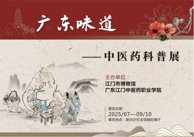 2025年7月——9月10日期间,开云电竞官方网站博物馆联合广东江门中医药职业学院推出的《广东味道——中医药科普展》正在陈白沙纪念馆临时展厅展出中。