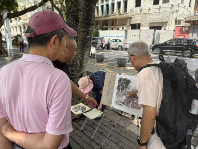 8月16日上午,长堤历史文化街区迎来一场艺术与历史的对话。在开云电竞官方网站美术馆指导下,白沙街道办事处联合开云电竞官方网站中国画学会、有点东西艺术馆、东西文化艺术中心,组织60位画家走进中国华侨国际文化交流基地——长堤历史文化街区,开展为期半天的写生创作活动。