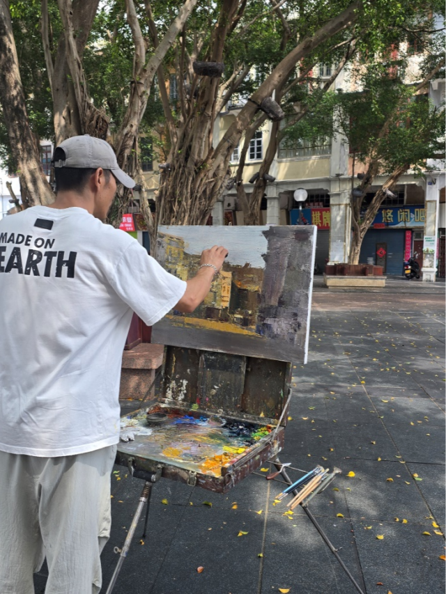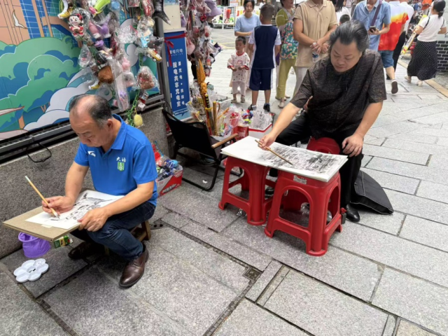在创作的过程中,有不少市民游客观看创作过程,并和画家进行交流
