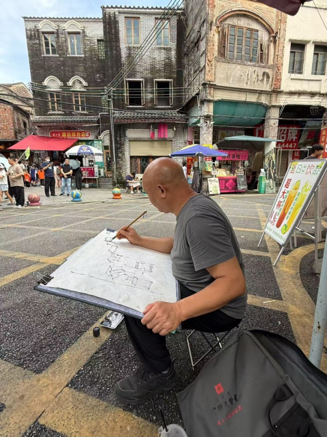 广东省中国画学会理事、广州画院特聘画家陈年发在街区内写生