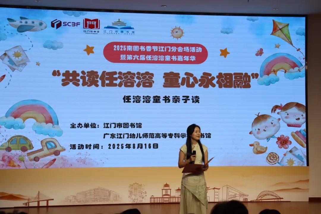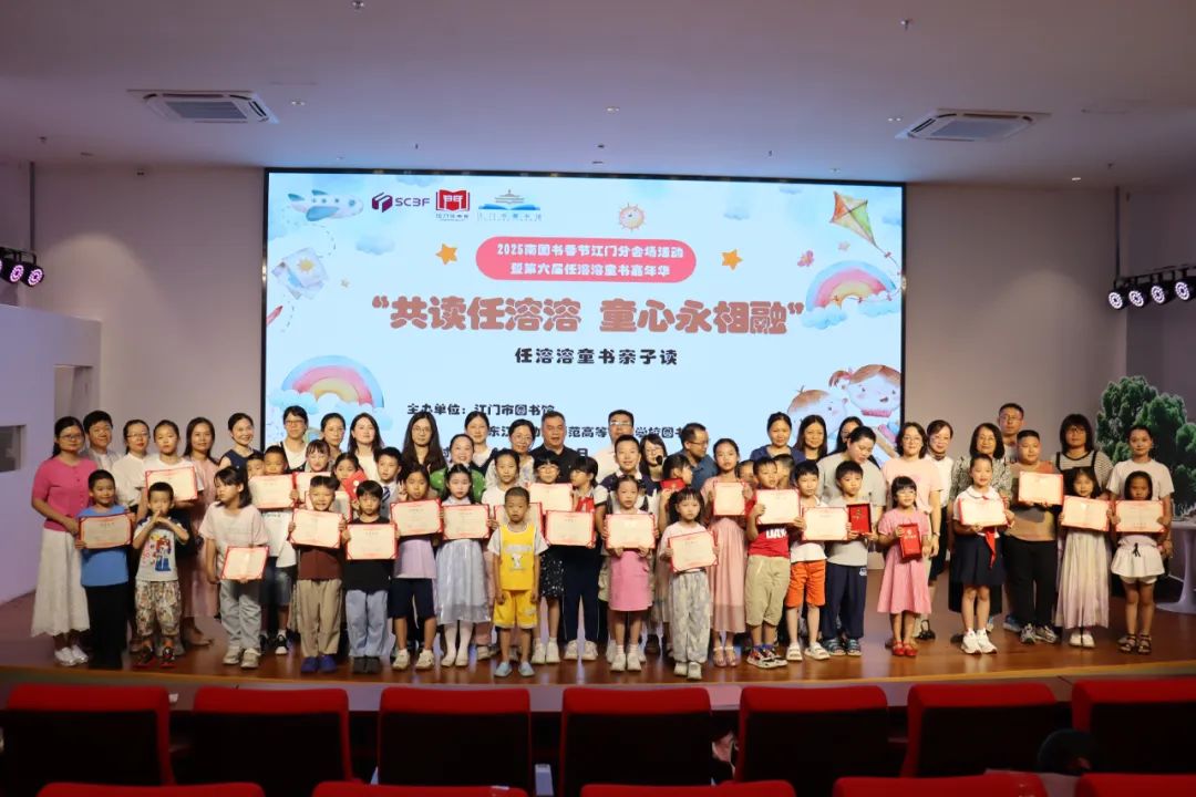 8月16日下午,开云电竞官方网站图书馆南楼报告厅内书香萦绕,由开云电竞官方网站图书馆、广东江门幼儿师范高等专科学校图书馆联合主办,广东省邓惠如名班主任工作室协办的2025南国书香节江门分会场活动暨第六届任溶溶童书嘉年华系列活动之“共读任溶溶,童心永相融”任溶溶童书亲子读活动展演圆满落幕。16组亲子以声音为桥,带现场观众走进任溶溶先生的儿童文学世界,在亲子共读的韵律里,定格了一段充满童趣与温情的时光。