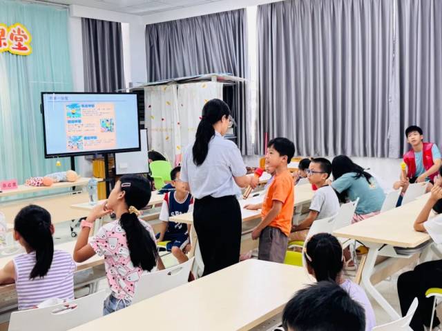 结合暑期气象灾害高发特点,苏老师重点讲解了 “雷雨、台风、高温” 三种常见气象灾害的应对方法,并通过真实案例警示大家重视防灾减灾。“2021年5月,广州全市7日凌晨遭遇历史罕见大暴雨袭击,从7日1时开始的大暴雨持续 了3到4个小时,该市南湖12小时内降水达244.3毫米。”发生这些情况我们应该如何防灾减灾呢?孩子们纷纷举手分享自己的应对方法。