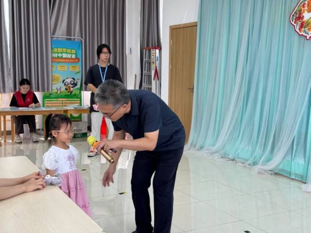 傅馆长围绕此次活动的主题,介绍了本土的诗词以及广府童谣,并邀请现场读者一起吟唱童谣,现场充满了欢乐与童真的气氛,孩子们跟着傅馆长一句一句地朗诵,感受着粤语独特的音韵之美。现场欢声笑语不断,孩子们在轻松愉快的氛围中,深入了解了岭南文化的魅力。