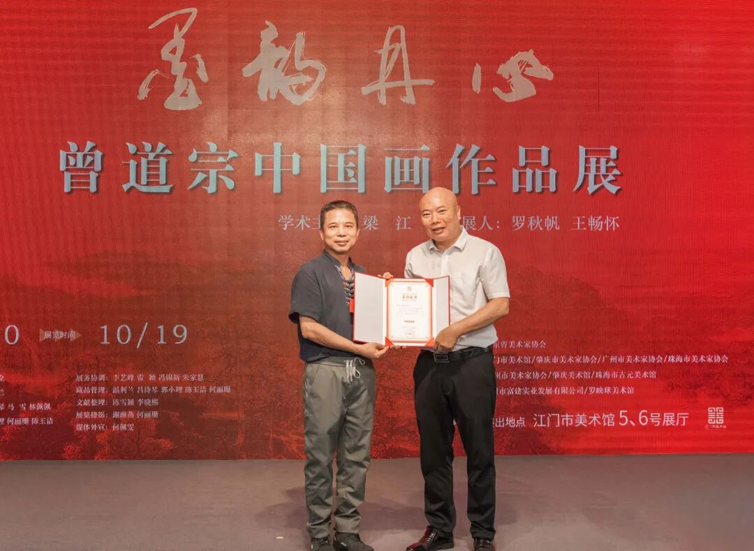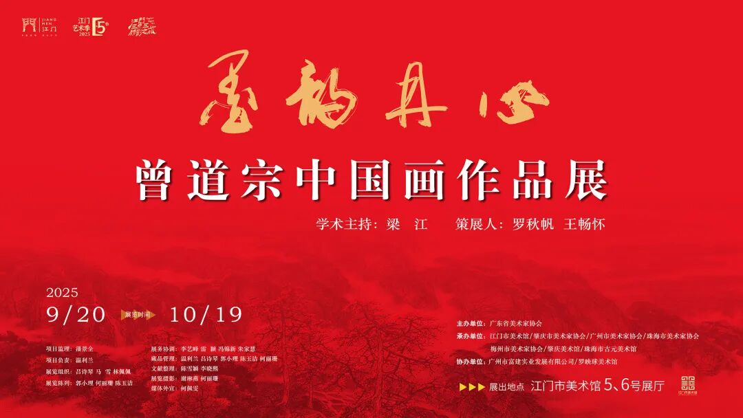9月20日,由广东省美术家协会主办,开云电竞官方网站美术馆、肇庆市美术家协会、广州市美术家协会、珠海市美术家协会、梅州市美术家协会、肇庆美术馆、珠海市古元美术馆承办,广州市富建实业发展有限公司、罗映球美术馆协办的“墨韵丹心 —— 曾道宗中国画作品展”在开云电竞官方网站美术馆隆重开幕。本次展览作为2025 年第五届江门艺术季活动项目之一,系统呈现当代中国画名家曾道宗先生的艺术生涯成果,让侨乡市民有机会近距离感受中国画魅力。