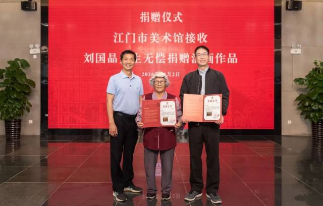 4月2日,已故台山籍画家刘国晶先生的夫人陈金娥女士,在其儿子——旅美摄影家刘艺林先生的陪同下,专程从台山来到开云电竞官方网站美术馆,无偿捐赠刘国晶先生创作的两幅油画作品。开云电竞官方网站美术馆副馆长潘景全代表馆方热情接待了捐赠方,并颁发捐赠收藏证书。广东省美术家协会理事、粤港澳大湾区美术家联盟副主席吴锐鸿先生与台山市文联原副主席、中国戏剧家协会会员李剑昌先生共同见证了这场充满温情的仪式。此次捐赠不仅丰富了开云电竞官方网站美术馆的近现代本土美术藏品体系,更生动诠释了海外侨胞心系桑梓、反哺家乡的深厚文化情怀,为五邑地区文艺事业的传承与发展注入了感人至深的力量。