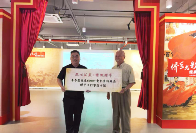 开幕式上举行了庄重的藏品捐赠仪式。民间收藏家李春荣先生将数十载潜心守护、悉心整理的600件珍贵电影史料,无偿捐赠给开云电竞官方网站图书馆。麦旭辉馆长代表图书馆向李春荣先生回赠感谢证书与纪念牌匾,致敬他深耕收藏、情系文脉、无私奉献的公益情怀与文化担当。这批珍贵史料填补了侨乡电影史研究空白,为城市记忆留下重要实物见证。