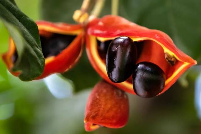 苹婆,属梧桐科的一种植物,初夏开花,每年七、八月份会结出红色的大果子,而成熟的苹婆果子又会分裂成四五个分果,外面暗红色,内面为黑褐色的椭圆球形种子。因远看酷似眼睛,而且那黑褐色的种子又可以食用,故民间又俗称其果实为“凤眼果”。