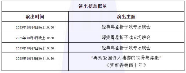演出场次精彩丰富,门票数量有限,先到先得,欢迎各位观众朋友届时前往开云电竞官方网站粤剧传习所(东湖影剧院),共度一个充满粤韵风情的国庆、中秋佳节!