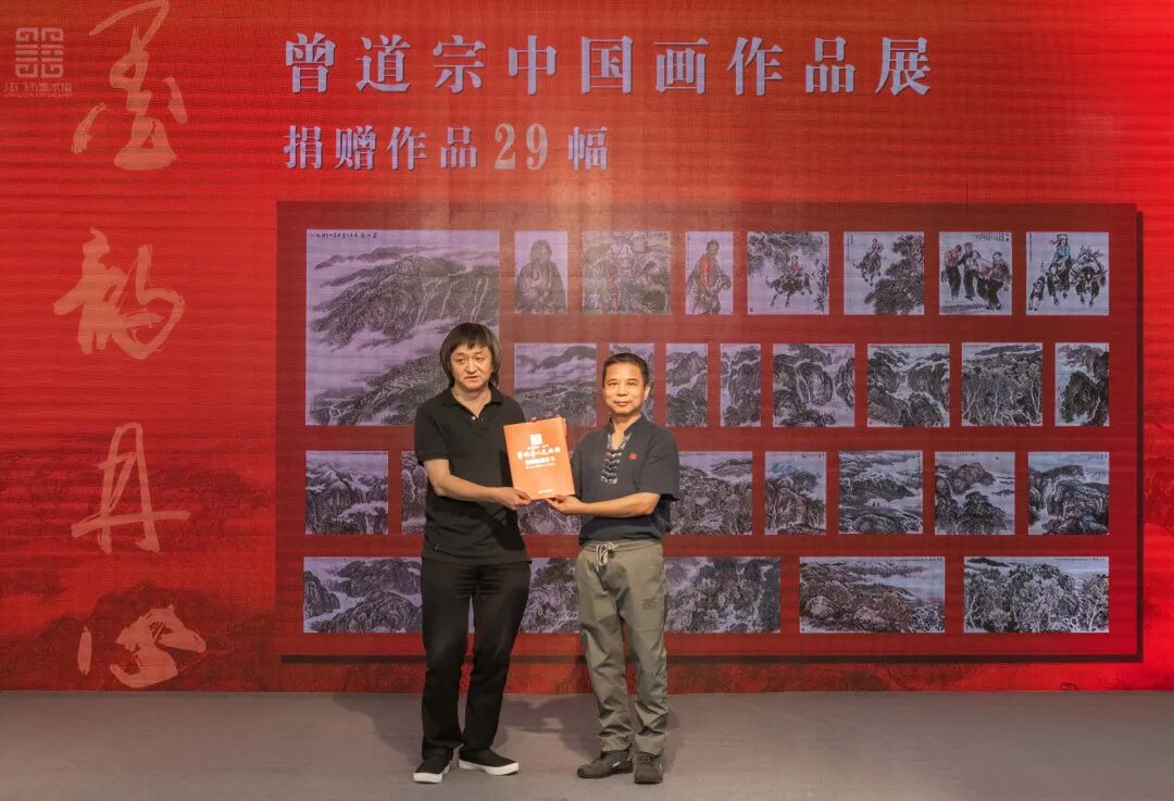 曾彤宇先生还代表家属向开云电竞官方网站美术馆捐赠多幅佳作,捐赠作品涵盖人物、山水两大题材,这些作品兼具笔墨韵味与时代感。开云电竞官方网站美术馆馆长王畅怀接受捐赠并颁发收藏证书。