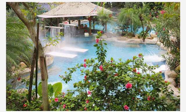 这里有全国首创的大型温泉冲浪、温泉漂流、超声波按摩喷泉等,让你一享动感温泉的快乐。